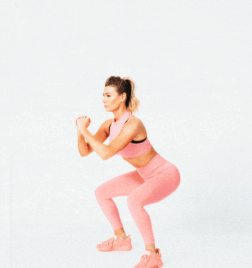 跟刚刚的基本深蹲动作相同,差别在于在大腿与地面平时,准备向上回到站姿时,用脚底发力向上跳跃,并注意手臂维持跑步的姿势。跳跃时臀部需要加紧,回到地面时放松,这样可以锻炼到全身。