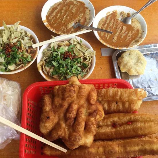 它类似于大学食堂的就餐模式,先买卡冲钱,然后打卡退钱。锅巴菜、鸡蛋果子、烧饼牛肉、素卷圈都是不错的选择,老豆腐麻酱的味道也很浓郁。