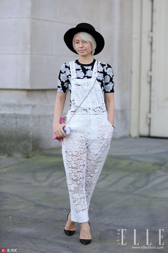 白色虽然是素色,但是它会反射光线,所以搭配时一定不能有太多重点。繁花+白色,反而让人找不到重点。