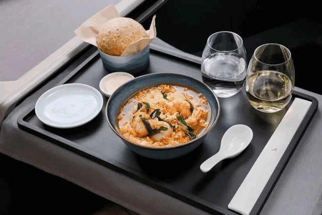 泰航的餐食融合了泰国风味和世界美食,食物的原材料都来源于泰国北部皇家项目,而厨师会根据季节来制定菜单。如果菜单上有冬阴功汤、咖哩鸡、椰子蛋糕等泰式餐食小吃一定不要错过。