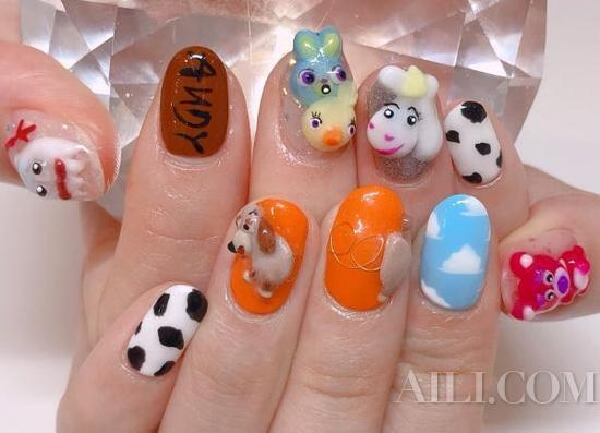 玩具总动员4,让大小朋友纷纷走进电影院追剧。它也是非常好的美甲范本,每一款都可以做在指面。除了平面的彩绘风格,还可以做成立体的美甲更加讨喜可爱。