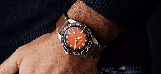这款The Rake x Oris Divers 60-5的焦糖蜂蜜色不论男女戴都好看,这种温暖的色调也是该品牌为了关注男性心理健康特别设计的。
