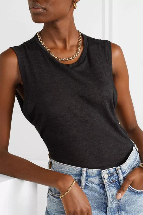 今年很火的老头背心怎么穿出时髦感?答案也是搭大金链子,可以中和背心的休闲感。黑金配会更酷