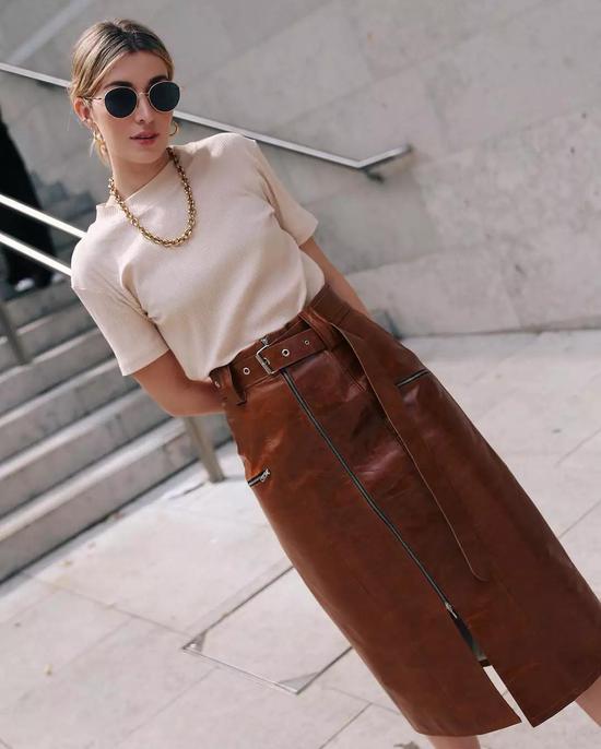 针织衫这类很柔的材质更是适合拿它来搭,一硬一软,平衡得刚刚好。