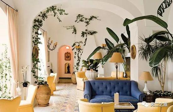 这个由古老的那不勒斯贵族家庭修建的酒店坐落于波西塔诺海岸的悬崖上,每间客房都有看得见海的阳台。坐在巴洛克风格的房间里,看海天一色,时间就变得很慢很慢。